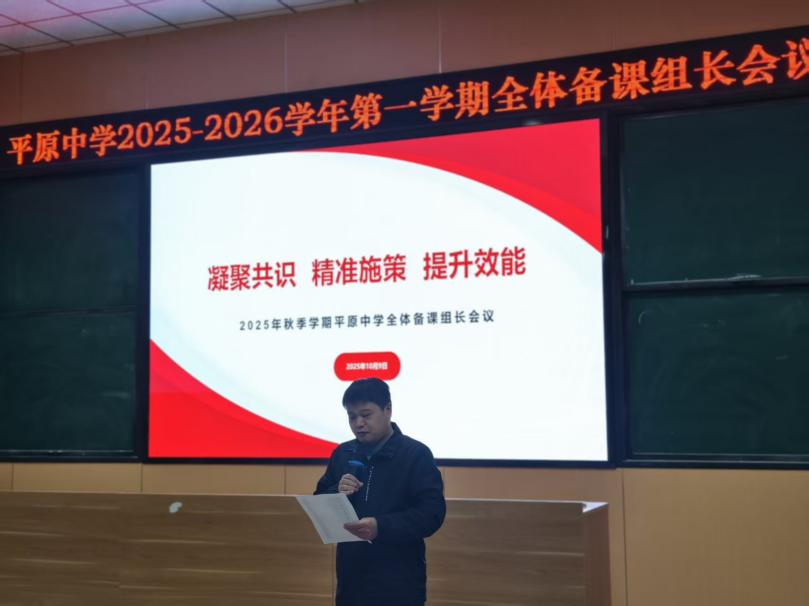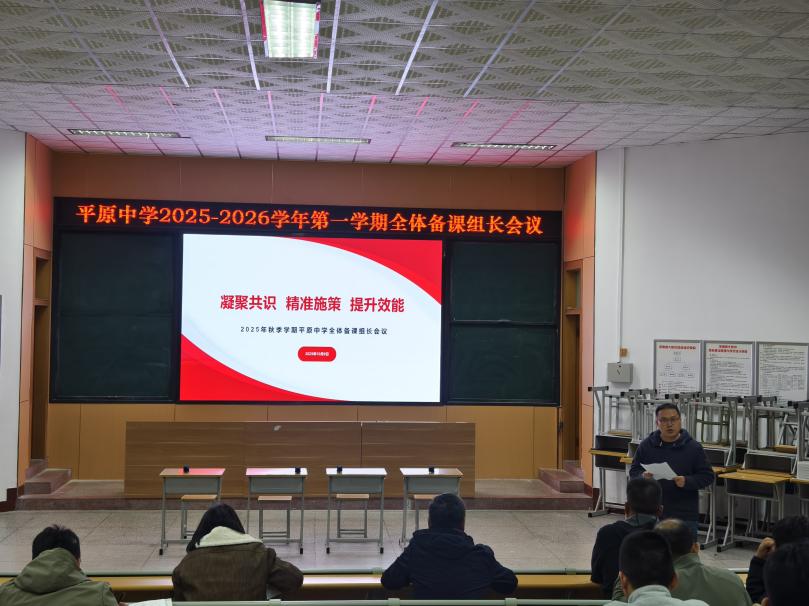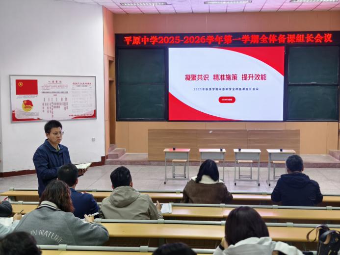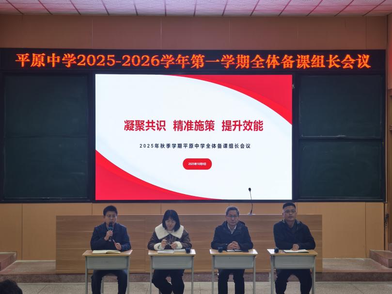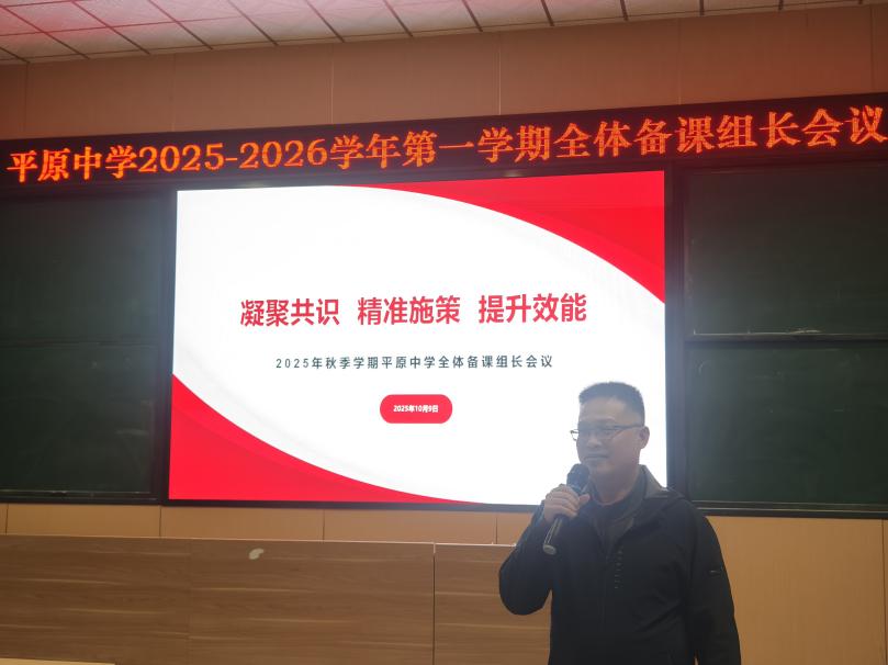 为深入落实教育局“上好常态课”工作要求,统筹推进各年级、各学科教学规划落地,切实提升课堂教学质量与教研实效,2025年10月9日下午,新乡市平原中学2025-2026学年第一学期备课组长会议在逸夫楼阶梯教室隆重举行,会议主题为“凝聚共识·精准施策·提升效能”。
